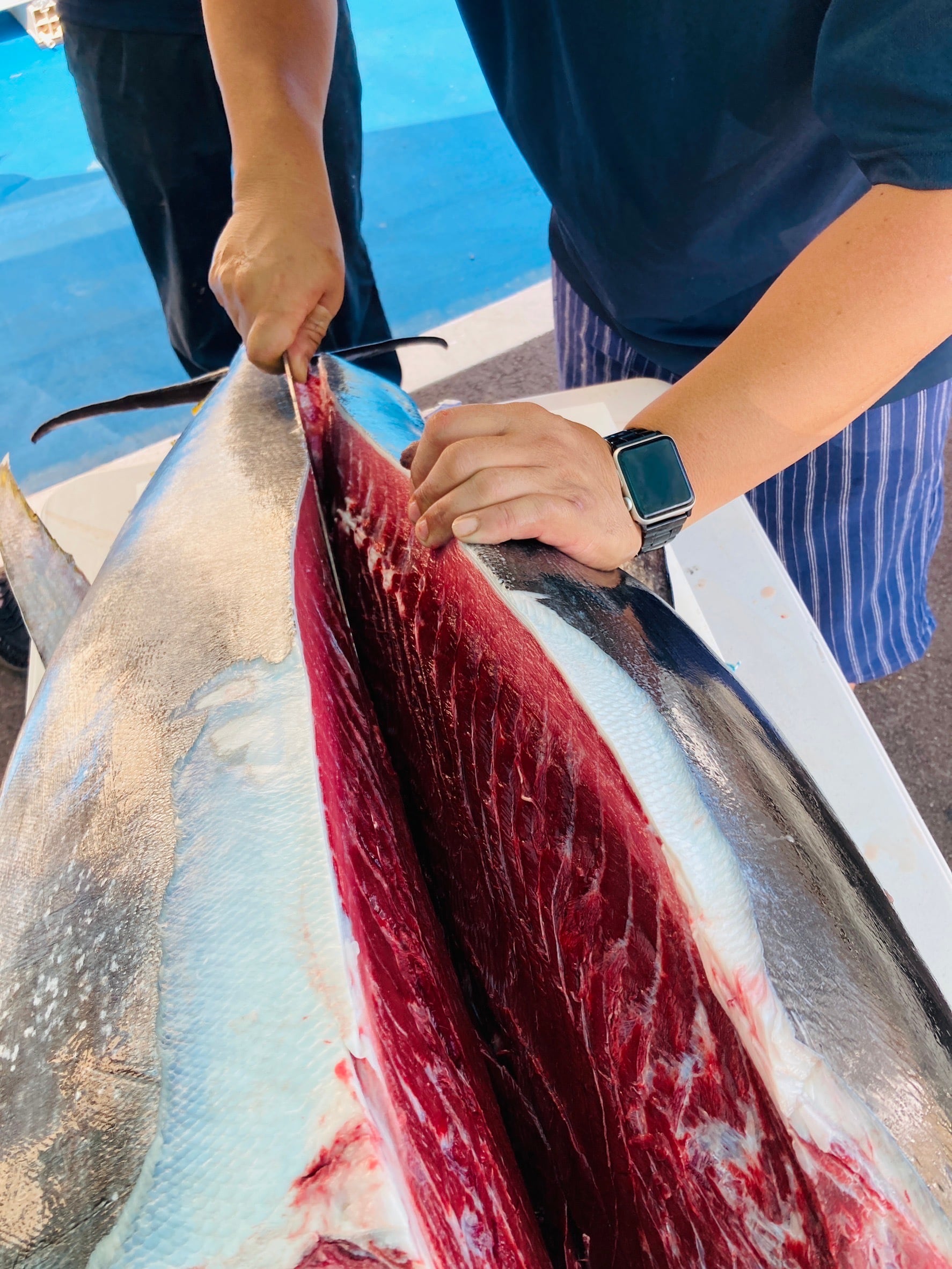 競(せり)には一切出されません。主に有名料亭や会員制の高級寿司店などが取引先となります。もちろんスーパーに並ぶことは皆無なので一般に養殖生本マグロ購入することはできません。